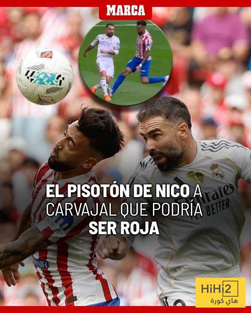 - ركض نيكو ويليامز على سفح كارفاجال ، وهي لقطة يمكن أن تستحق بطاقة حمراء مباشرة.
