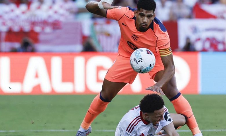 لم يتمكن مدافع برشلونة رونالد أراخو من السيطرة على غضبه من قرارات التحكيم خلال المباراة ضد إشبيلية ، في بطولة الدوري الإسباني يوم الأحد.